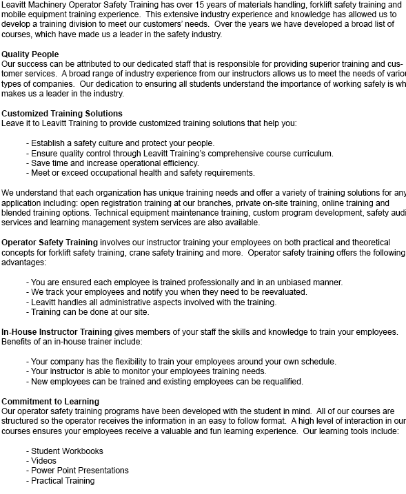 The huge range of start times and programs we put forward should make sure that you find the ideal match for your requirements. Training can be done at our location or at your facility. Our skilled personnel can tailor our training to your particular equipment at your location of business.
